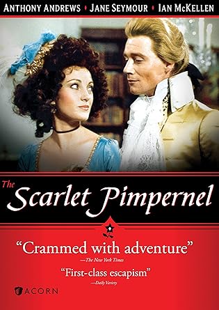 The Scarlet Pimpernel. I've seen three adaptations of this, and enjoyed all of them. Perhaps I just lucked into watching them in the right order. Or perhaps I just really, really love this story?! This time I watched the movie starring Anthony Andrews and Jane Seymour. (Also a very, very young Ian McKellen.) The three adaptations are very different from one another. I like that in this adaptation we have a more straight-forward romance.